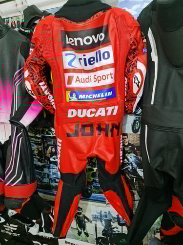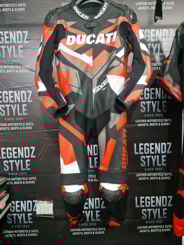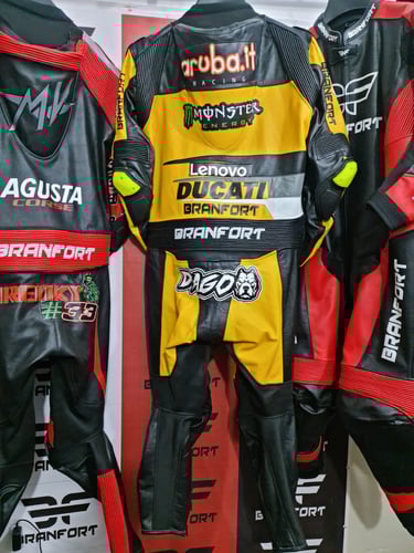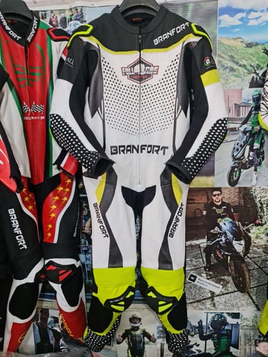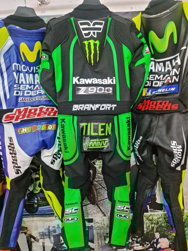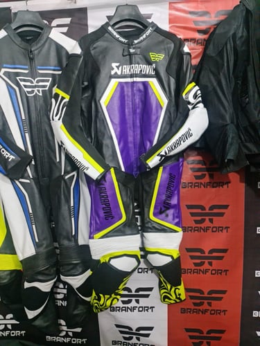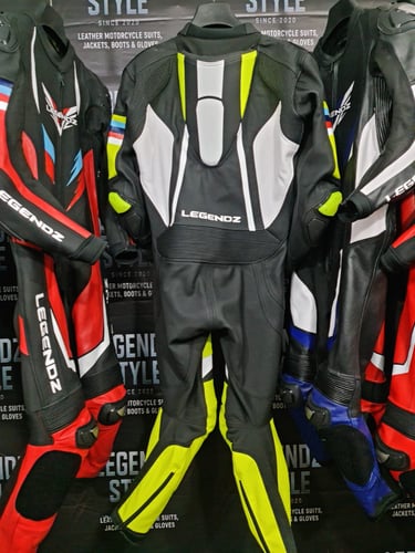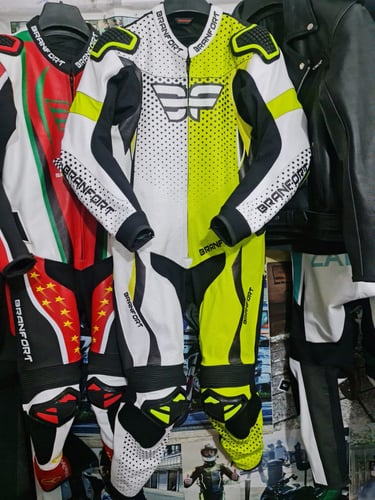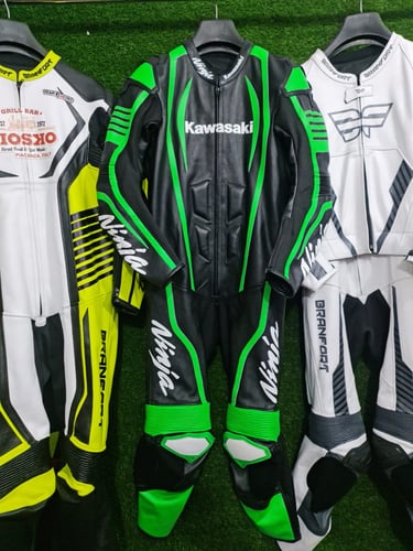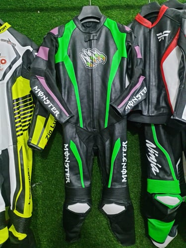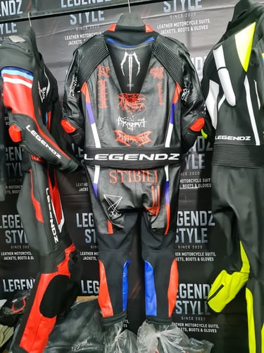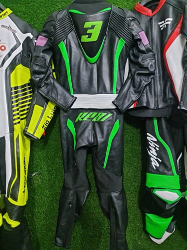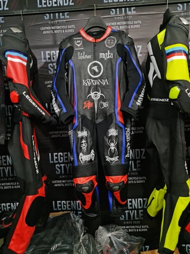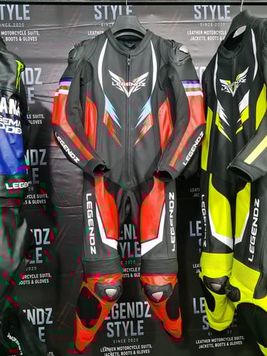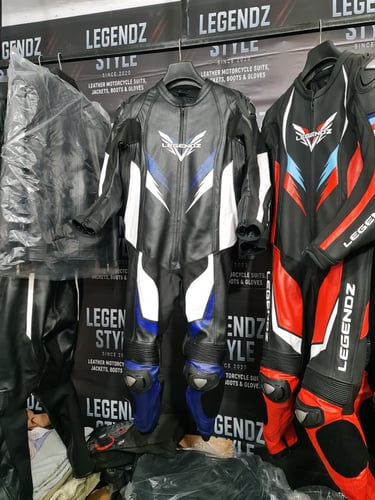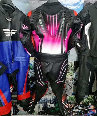 Showcasing our custom leather suits, jackets, boots, and gloves — crafted for style, protection, and performance.